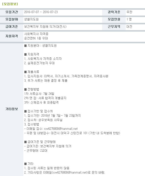 19-03-28 11:31 (채용공고)생활지도원 모집 페이지 정보 작성자 성우보육원 댓글 0건 조회 8,234회 본문 생활지도원 모집 목록 댓글목록 댓글목록 등록된 댓글이 없습니다.