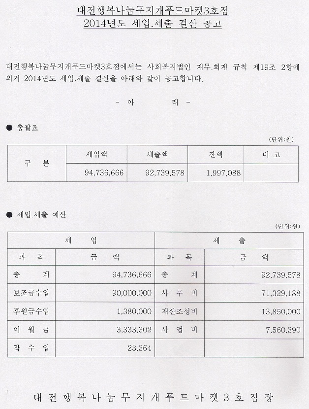 19-03-28 11:19 대전행복나눔무지개푸드마켓3호점 2014년도 세입.세출 결산공고 페이지 정보 작성자 성우보육원 댓글 0건 조회 6,957회 본문 대전행복나눔무지개푸드마켓3호점 2014년도 세입.세출 결산공고 목록 댓글목록 댓글목록 등록된 댓글이 없습니다.