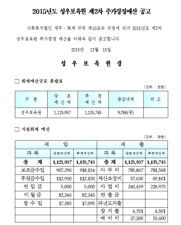19-03-28 11:24 2015년 성우보육원 제2차 추가경정 예산공고 페이지 정보 작성자 성우보육원 댓글 0건 조회 6,825회 본문 2015년 성우보육원 제2차 추가경정 예산공고 목록 댓글목록 댓글목록 등록된 댓글이 없습니다.