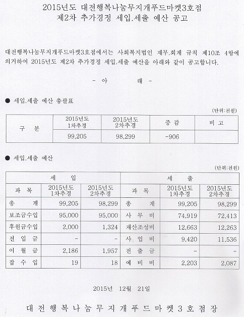 19-03-28 11:24 대전행복나눔무지개푸드마켓3호점 2015년도 제2차 추가경정 세입.세출 예산 공고 페이지 정보 작성자 성우보육원 댓글 0건 조회 6,784회 본문 대전행복나눔무지개푸드마켓3호점 2015년도 제2차 추가경정 세입.세출 예산 공고 목록 댓글목록 댓글목록 등록된 댓글이 없습니다.