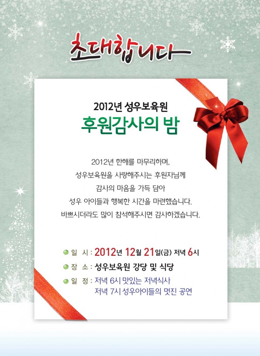 2012년 성우보육원 후원감사의 밤에 여러분을 초대합니다~~^^