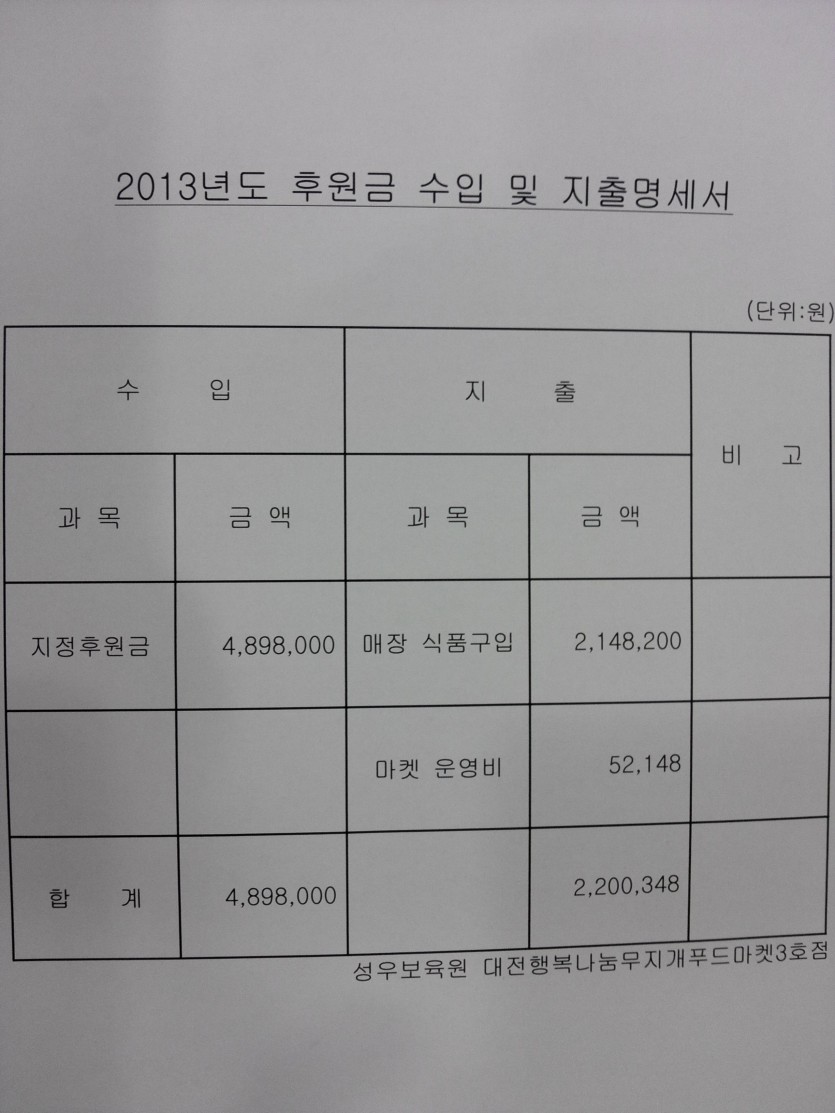 성우보육원 행복나눔무지개푸드마켓3호점 2013년도 후원금 수입 및 지출명세서 작성일 19-03-28 10:58 페이지 정보 작성자성우보육원 조회 8,125회 댓글 0건 본문 성우보육원 행복나눔무지개푸드마켓3호점 2013년도 후원금 수입 및 지출명세서 댓글목록 댓글목록 등록된 댓글이 없습니다.