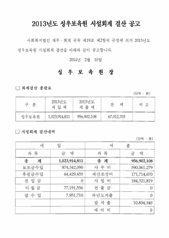 <공고> 2013년 시설회계결산 작성일 19-03-28 10:59 페이지 정보 작성자성우보육원 조회 7,962회 댓글 0건 본문 <공고> 2013년 시설회계결산 댓글목록 댓글목록 등록된 댓글이 없습니다.