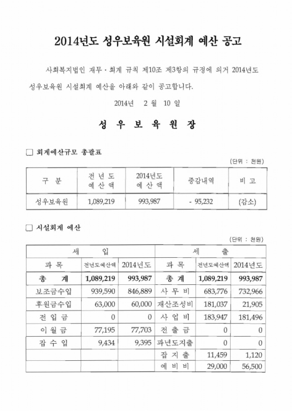 <공고> 2014년 시설회계예산 작성일 19-03-28 10:59 페이지 정보 작성자성우보육원 조회 7,661회 댓글 0건 본문 <공고> 2014년 시설회계예산 댓글목록 댓글목록 등록된 댓글이 없습니다.