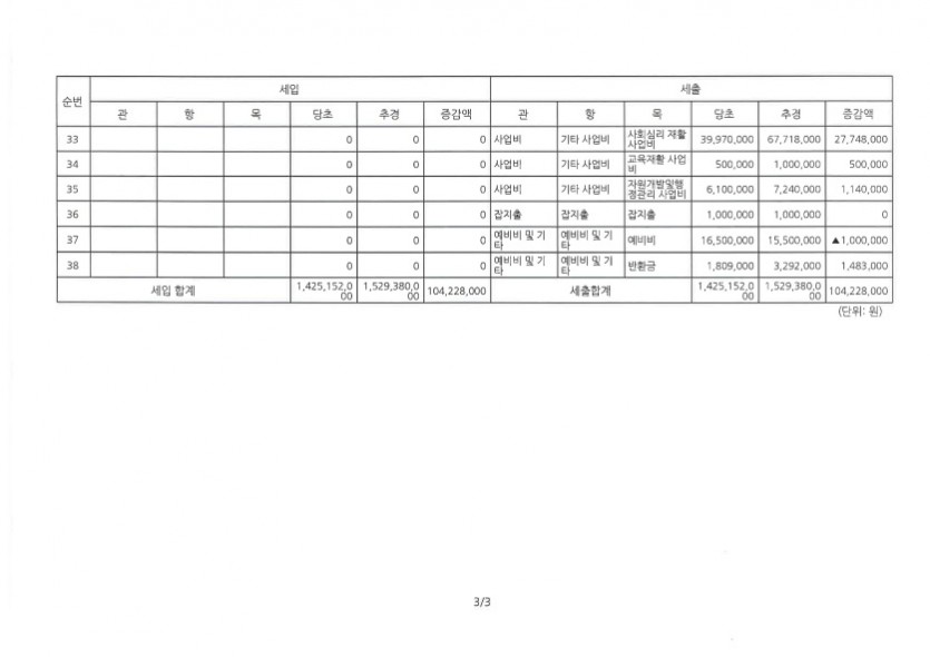 (공고)2019년도 제1차 추경 예산