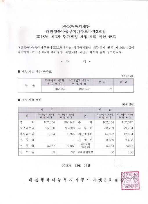 대전행복나누무지개푸드마켓3호점 2018년 제2차 추가경정 세입.세출 예산공고 작성일 19-03-28 11:47 페이지 정보 작성자성우보육원 조회 8,510회 댓글 0건 본문 대전행복나누무지개푸드마켓3호점 2018년 제2차 추가경정 세입.세출 예산공고 댓글목록 댓글목록 등록된 댓글이 없습니다.