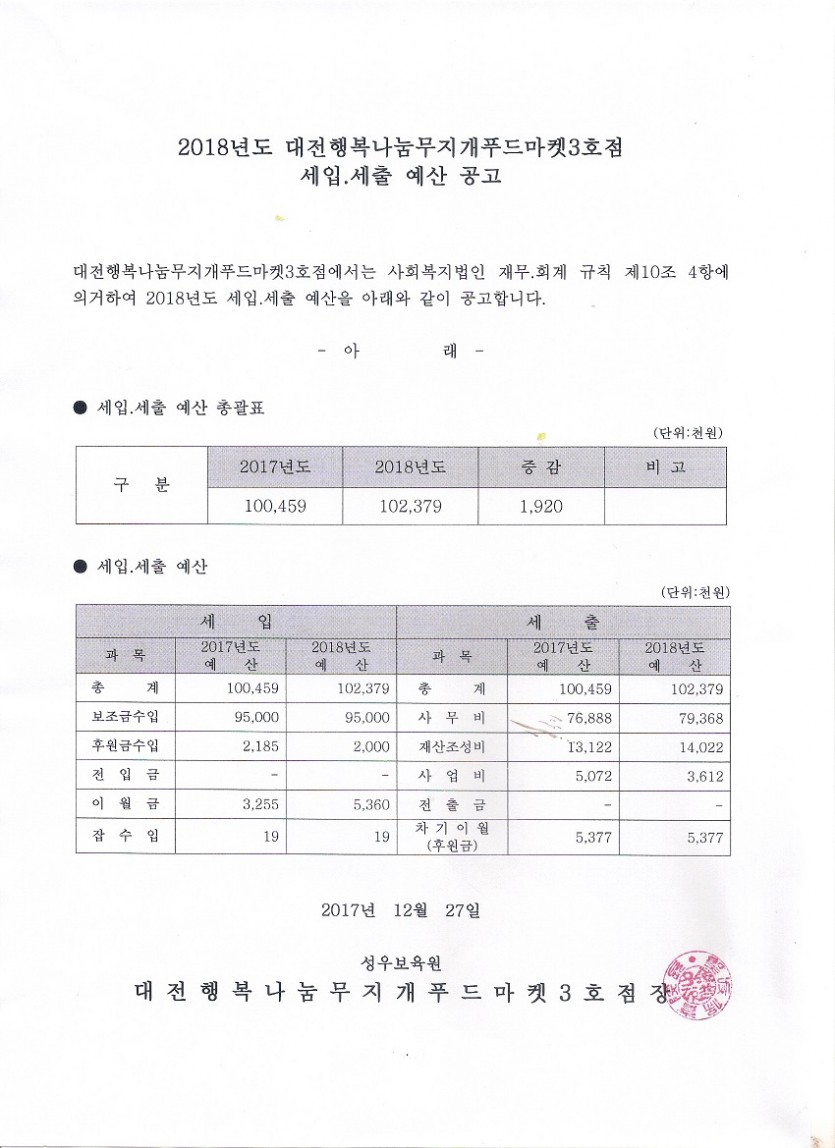 19-03-28 11:42 대전행복나눔무지개푸드마켓3호점 2018년도 세입.세출 예산 공고 페이지 정보 작성자 성우보육원 댓글 0건 조회 7,627회 본문 대전행복나눔무지개푸드마켓3호점 2018년도 세입.세출 예산 공고 목록 댓글목록 댓글목록 등록된 댓글이 없습니다.