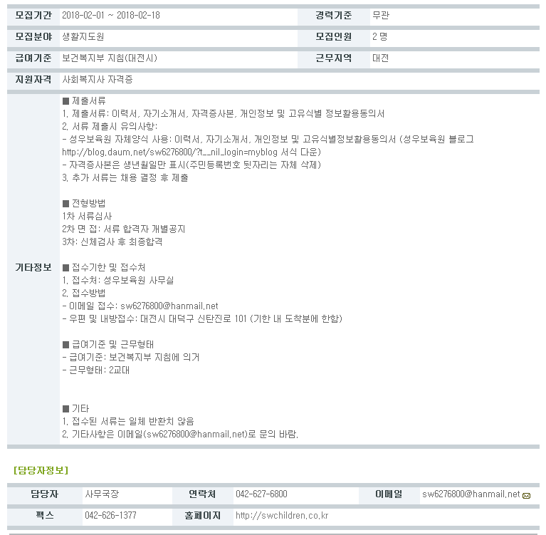 19-03-28 11:43 (공고)생활지도원 모집 페이지 정보 작성자 성우보육원 댓글 0건 조회 7,405회 본문 (공고)생활지도원 모집 목록 댓글목록 댓글목록 등록된 댓글이 없습니다.