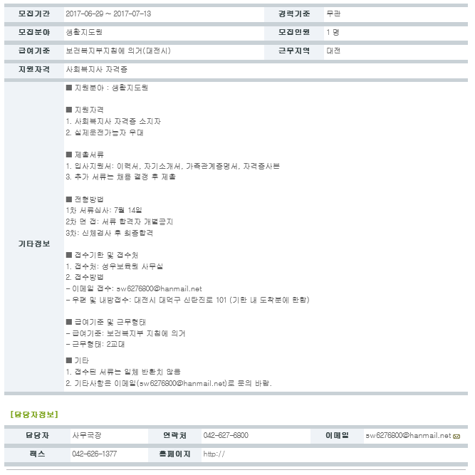 (채용공고)생활지도원 모집