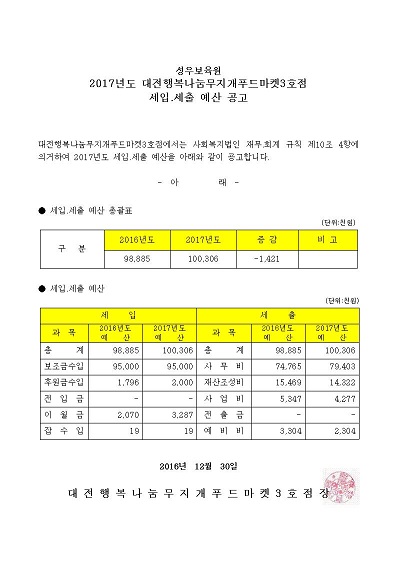 19-03-28 11:34 대전행복나눔무지개푸드마켓3호점 2017년 세입.세출 예산 페이지 정보 작성자 성우보육원 댓글 0건 조회 7,774회 본문 대전행복나눔무지개푸드마켓3호점 2017년 세입.세출 예산 목록 댓글목록 댓글목록 등록된 댓글이 없습니다.