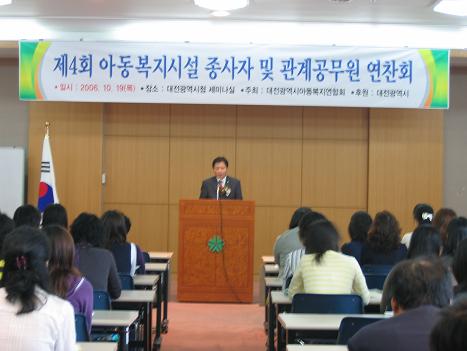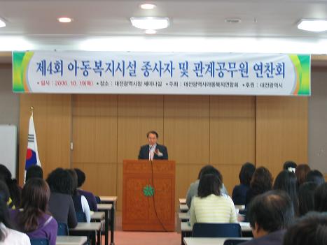 2006.10.20 10월 19일 아동 복지시설 종사자 및 관계 공무원 연찬회 페이지 정보 작성자 성우보육원 댓글 0건 조회 2,296회 본문 10월19일(목요일)아동 복지시설 종사자 및 관계 공무원 연찬회가 시청 세미나 실에서 있었습니다. 목록 댓글목록 댓글목록 등록된 댓글이 없습니다.