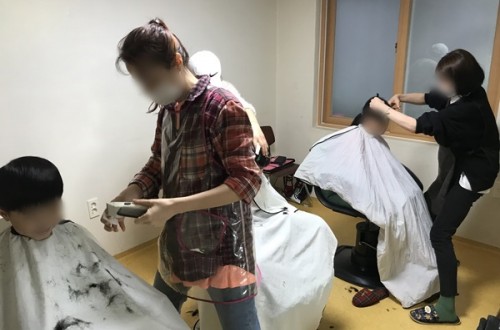 트윈스미용실에서 오셔서 미용봉사 해주셨습니다
