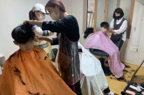 트윈스 미용실 봉사자 분들 오셔서 미용봉사 해…