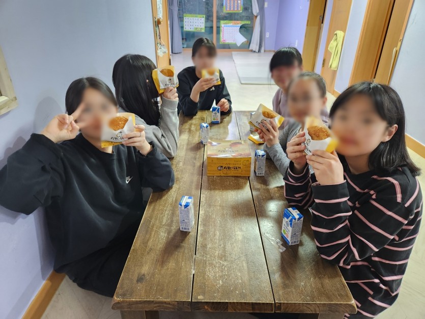 후원자님께 감사한 마음을 가지고 행복한 간식시간을 가질 수 있었습니다!