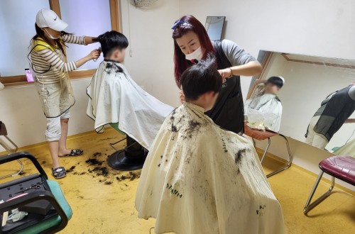 트윈스 미용실 마인자 원장님, 김민정 봉사자님 오셔서아동들의 머리를 깔끔하고 멋진 모습으로 미용해주…