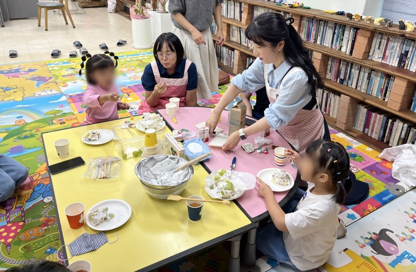 함께 케이크를 만드는 과정에서 웃음이 끊이지 않는