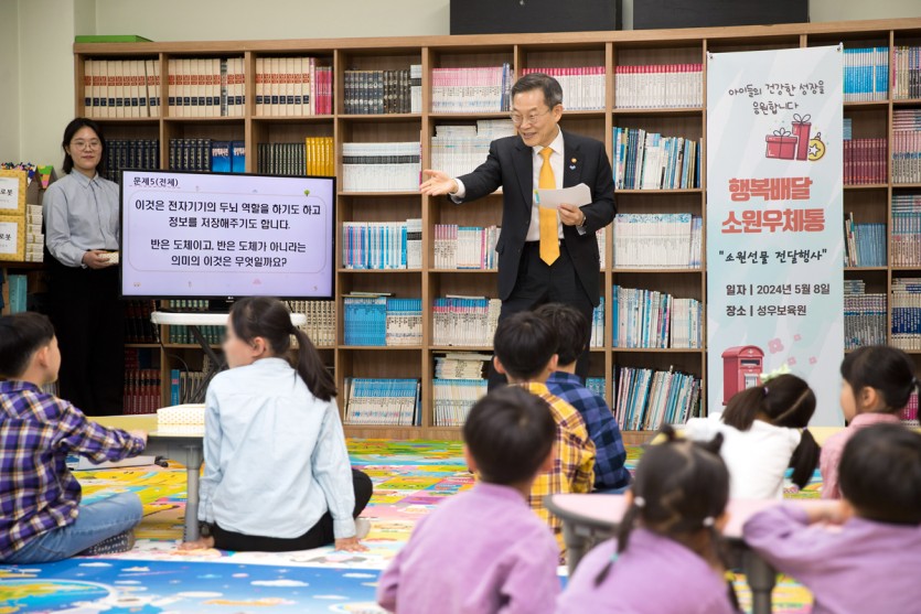 2024.05.08 2024.05.08. 이종호 과학기술정보통신부장관님 오셔서 행복배달 소원우체통 선물전달식 진행되었습니다.