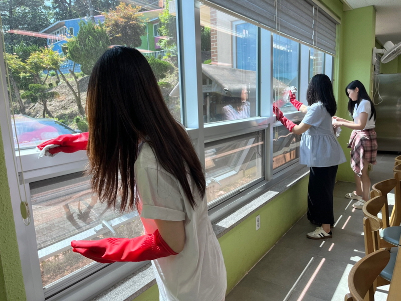 아이들이 매 끼니 함께 모여 식사하고 이야기 꽃을 피우는 장소이니 만큼 구석구석 꼼꼼히 쓸고 닦아 청소해주셔서