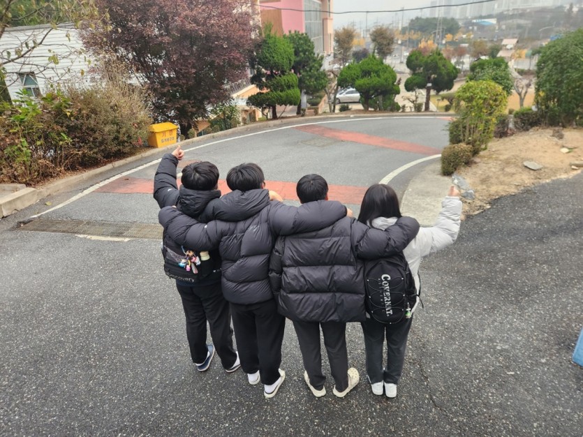 따뜻하고 가벼운 패딩을 입고 학교 가는 길에